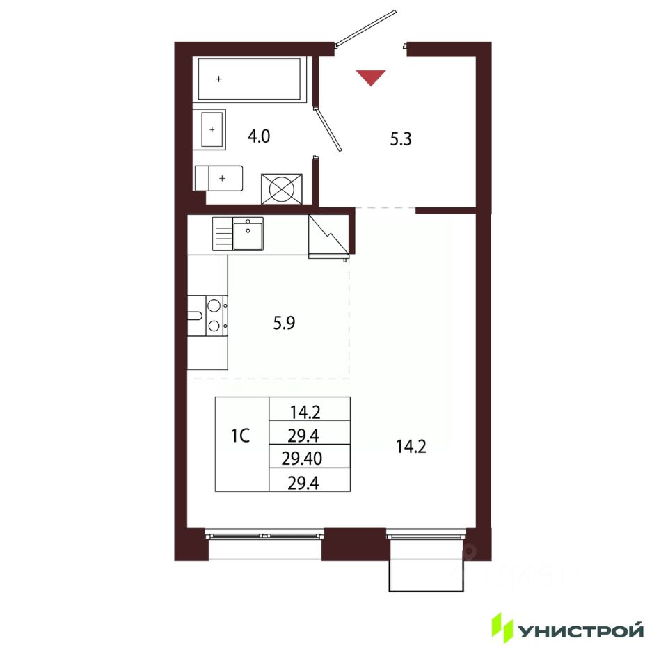 Общая площадь29,4 м²