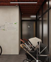 Двор и входы в парадные без пандусов и ступеней. Входные группы и холлы оформлены в натуральных оттенках по авторскому дизайн-проекту, и включают домофоны в тёплых тамбурах, бесшумные лифты и колясочные. Жилые этажи выдержаны в едином стиле. На цокольных этажах есть индивидуальные кладовые.
