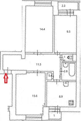 Удобная планировка включает в себя три изолированные комнаты правильной формы и кухню площадью 8,9 кв. м. Санузел раздельный. Большой коридор 11.5 кв. м., есть небольшая кладовка.