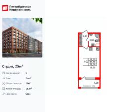 Удобная, классическая, функциональная европланировка, просторная прихожая 3.27 м². Общая площадь студии - 25 м², жилая 18.3 м², высота потолка 2.75 м.