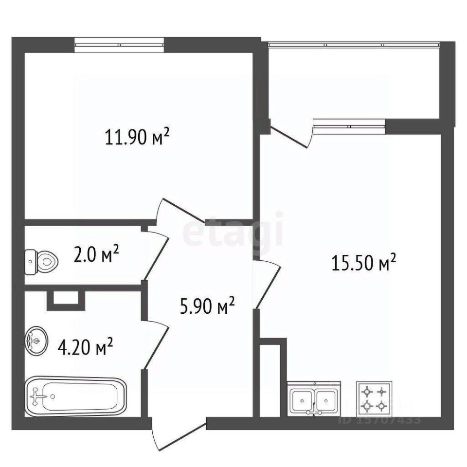 Удобная евро-планировка: просторная кухня-гостиная и отдельная спальня;