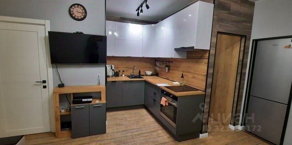 Кухня оснащена современной встроенной мебелью и всей необходимой встроенной техникой: духовой шкаф, микроволновая печь, варочная поверхность, посудомоечная машина, холодильник. Мебель и техника остаются в квартире.
