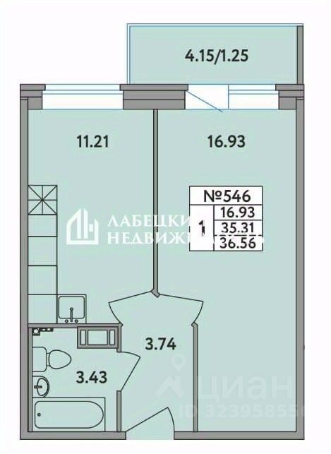 • Общая площадь указана без учета балкона (4,15 м²)