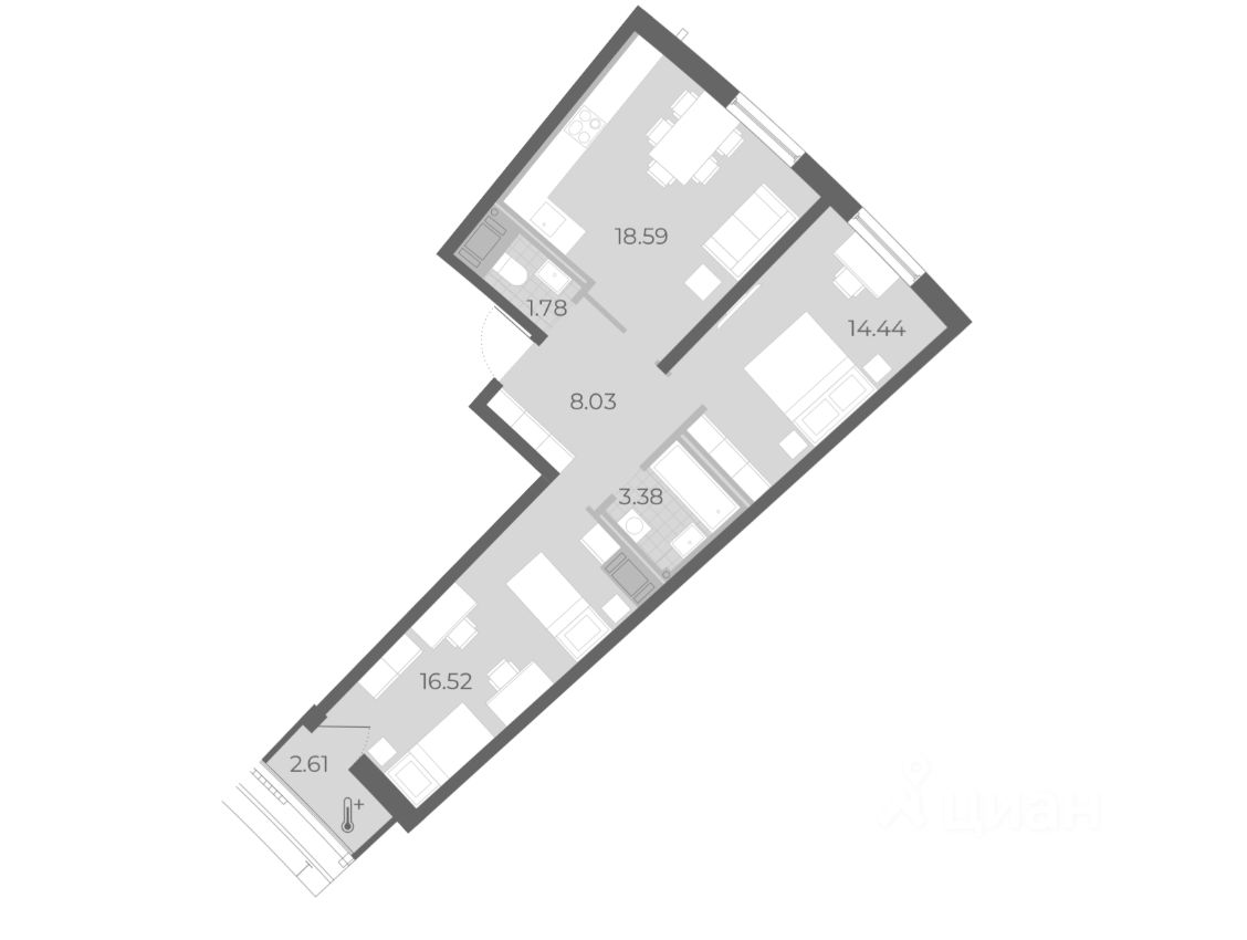 Квартира без ремонта, что дает вам возможность оформить интерьер по своему вкусу и создать идеальное пространство для жизни. В планировке предусмотрены два санузла: один совмещенный и один отдельный, а также лоджия, где можно обустроить уютное место для отдыха.