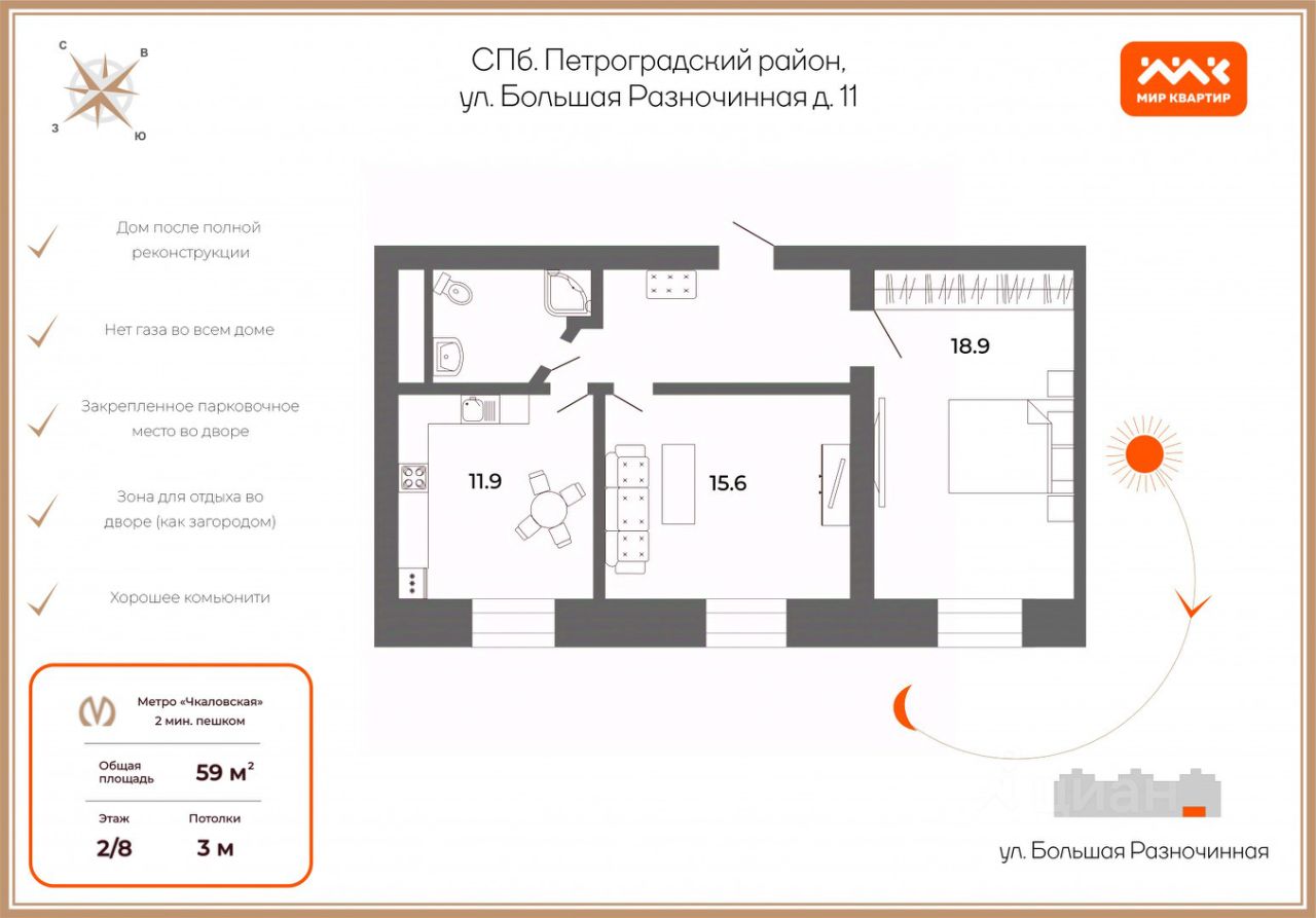 Исторический тихий центр Петербурга на Петроградской стороне, в шаговой доступности до станции метро "Чкаловская".