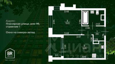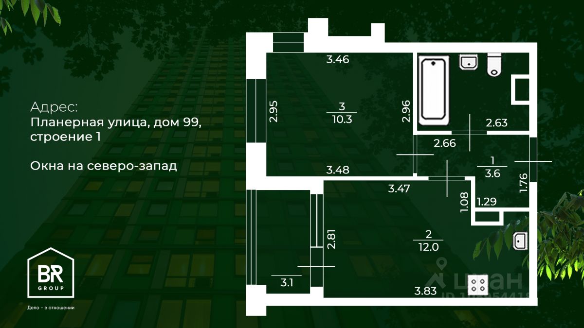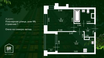Идеальная планировка: спальня 10,3 м², кухня-гостиная 12 м², коридор 3,6 м², санузел 4,4 м² — все помещения правильной формы, без лишних потерь на площади.