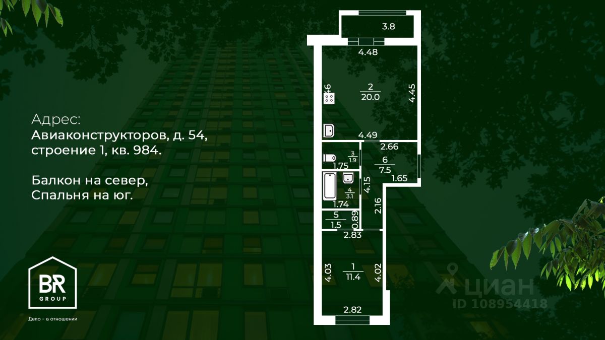 Идеальная планировка: Правильная форма комнат, раздельный санузел. Окна выходят на 2 стороны: спальня выходит в тихий двор, а гостиная на проспект Авиаконструкторов.