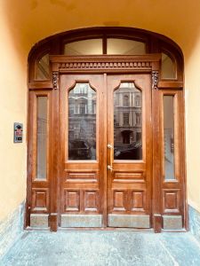 Основной вход- с улицы , с отреставрированной входной дверью. Есть лифт.