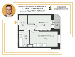 Кухня порядка 14.7 м2, что фактически делает квартиру ЕВРО-ДВУХКОМНАТНОЙ.