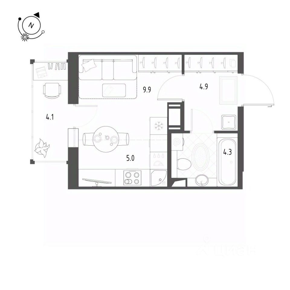 342041 Продается светлая студия-квартира в современном жилом комплексе ЖК Монография , площадь 24,7 м2.