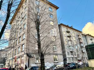 Дом кирпичный, Сталинского неоклассицизма 1959 года постройки, перекрытия - железобетонные плиты. Все окна выходят во двор, высота потолков 3,05 м, есть застекленный балкон, окна все металлопластиковые, в комнатах сохранен советский паркет в хорошем состоянии. Кухня квадратной формы 8 м2, есть ниши и небольшая кладовка. Тамбур с соседями на 3 квартиры, все соседи очень спокойные и приличные. Чистый аккуратный подъезд, просторный двор с небольшой парковой зоной. В подъезде есть лифт. Отопление центральное, в доме газ, вода подогревается газовой колонкой.