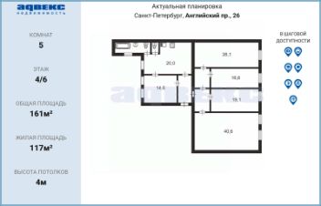 • Все 5 комнат изолированные, что открывает простор для воплощения самых разных житейских и творческих сценариев. Квартира обладает значительным потенциалом для перепланировки.