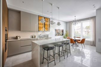 -сантехника в ванных комнатах представлена премиальной линейкой IDEAL Standart и Jacob Delafon, а бытовая техника в зоне приготовления — брендами Neff, Dunavox;