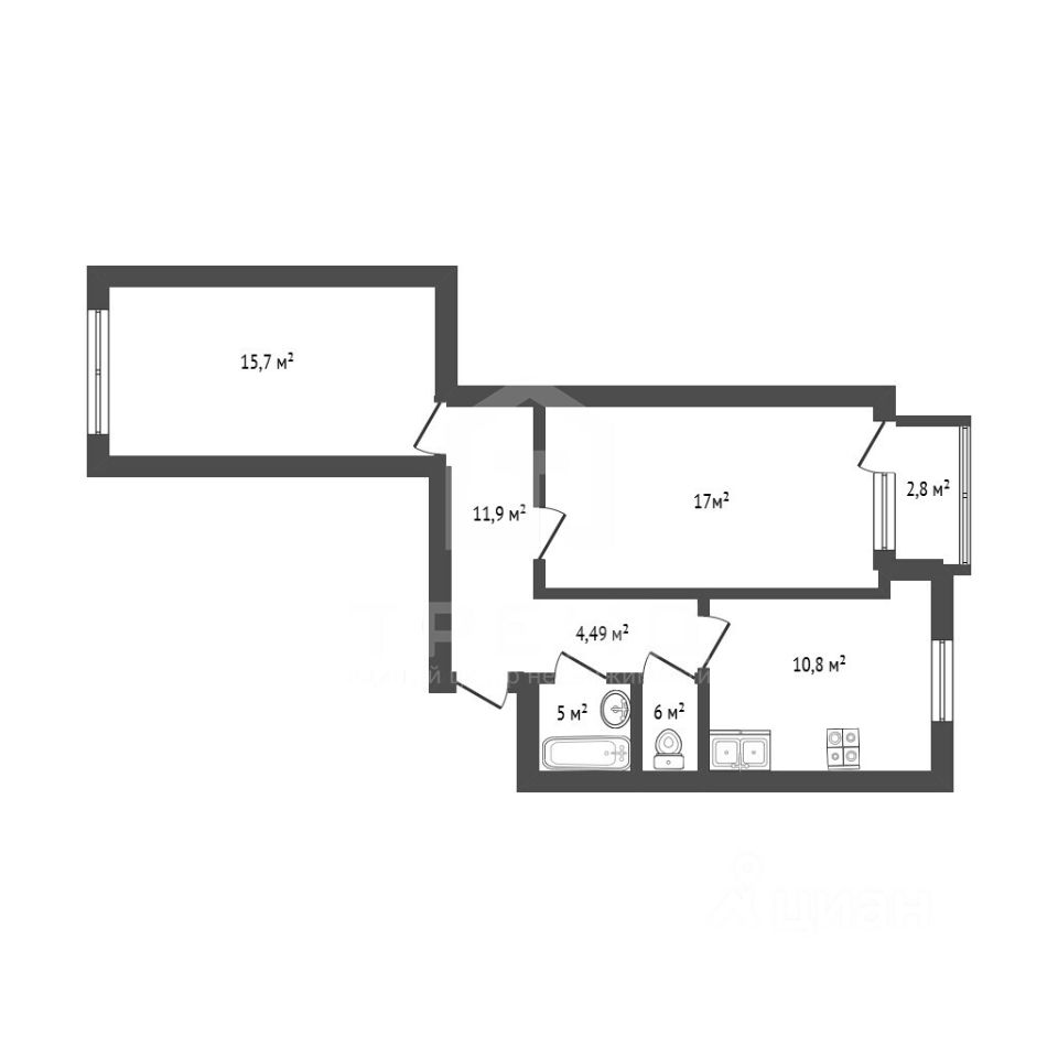 Просторные комнаты 15,7 м² + 17 м² — идеально для семьи