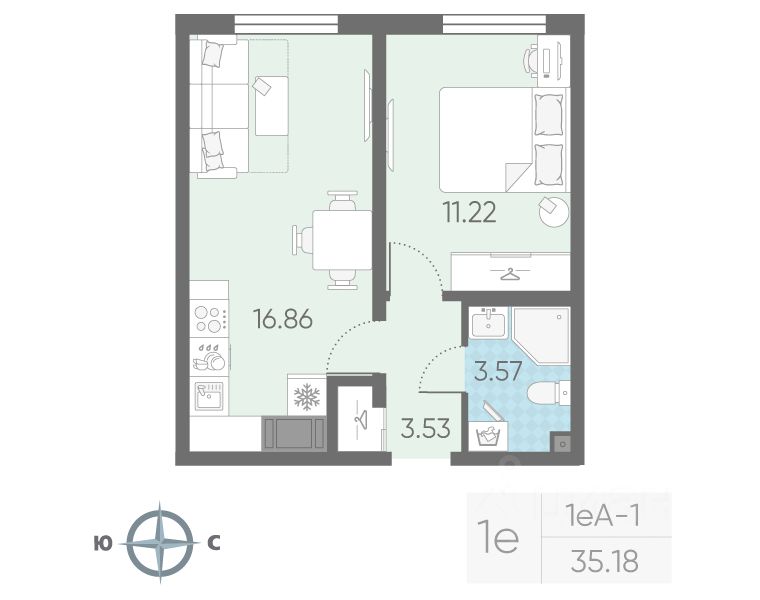 Продается 1-комнатная квартира в ЖК "Морская миля" на 19 этаже. Общая площадь составляет 35.18 кв. м. Квартира с чистовой отделкой. Жилой комплекс "Морская миля" располагается по адресу Санкт-Петербург, Красносельский.