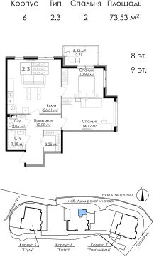 Продаётся 2-комнатная квартира в сданном доме (Дом М6 - Котка), срок сдачи: IV-кв. 2023, общей площадью 73.53 кв.м., на 8 этаже. ЖИЛОЙ КОМПЛЕКС В ВЫБОРГЕ