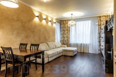 Премиальная отделка и техника: Кухня оборудована итальянской мебелью выполненной на заказ и техникой премиум-брендов (Miele, Neff, Kuppersbusch, Liebherr). Полы — массивная дубовая доска, в санузлах — теплые полы, итальянские двери.