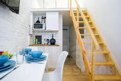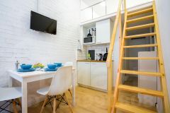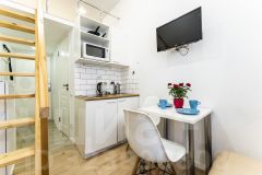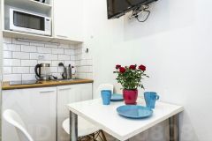 В квартире полностью заменены все инженерные коммуникации. Каждый номер оснащен собственным санузлом и кухней.