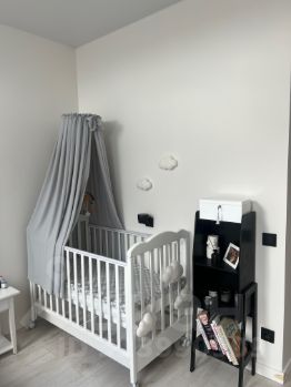 Объединенная кухня-гостиная-прихожая ок.40 кв.м. без коридоров и стен делает квартиру светлой и просторной, при этом сохранена возможность возведения стен согласно планировке (под потолком установлены закладные). Изолированная спальня с мансардными окнами - значительно больше света даже зимой.