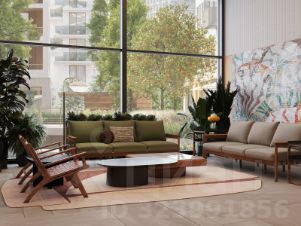 Мы разделили лобби на два типа — большие (одно на каждый дом) и компактные (на каждую секцию). Для создания интерьеров лобби и холлов мы используем материалы природных оттенков, текстуры дерева и камня, матовые поверхности. В большие открытые пространства запускаем много естественного света, а витражное остекление органично связывает помещения с ландшафтом.