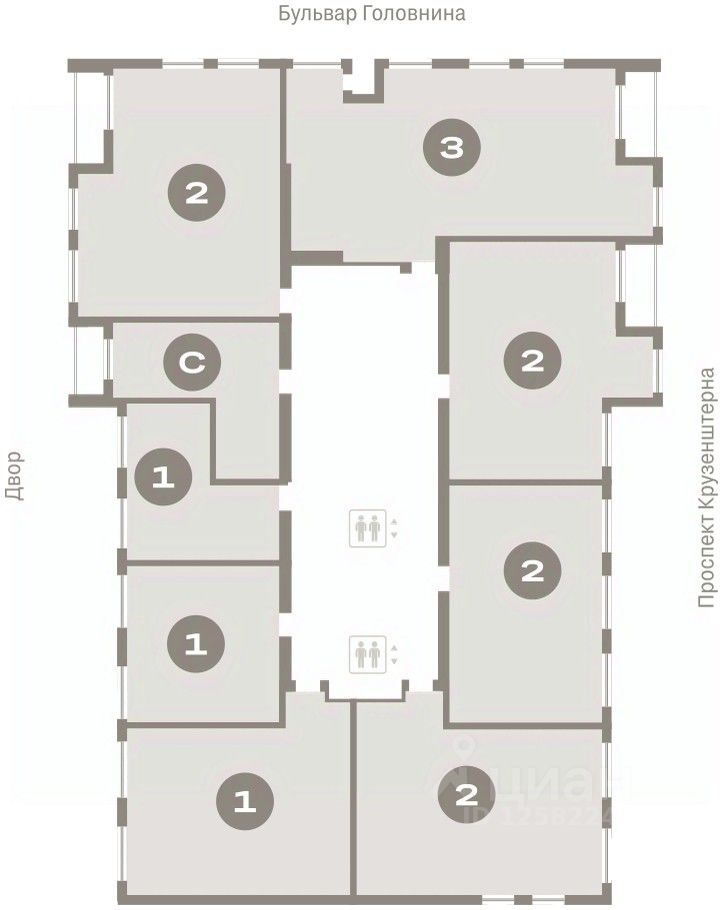 Однокомнатная квартира-студия с предчистовой отделкой в ЖК "Северный ветер" на 9 этаже. Общая площадь: 34.74 кв.м. Высота потолков 3.1 м.