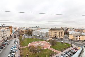 Именно так ощущается эта двухуровневая квартира под самой крышей исторического дома на углу Итальянской и Караванной и безусловно с неповторимым видом с лоджии на Манежную площадь.Тут нет суеты.Тут город звучит тише, а горизонт — ближе.