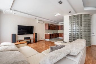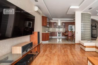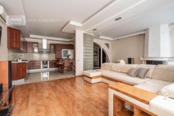 Просторная кухня-гостиная с камином, три отдельные спальни, два санузла, собственная сауна, постирочная, продуманные системы хранения и большой холл. Окна выходят на две стороны, в квартире много света.