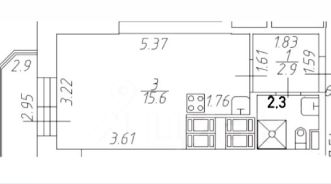 -Общая площадь квартиры 20,8 м², жилая 15,6 м², лоджия - 2,9 м²;