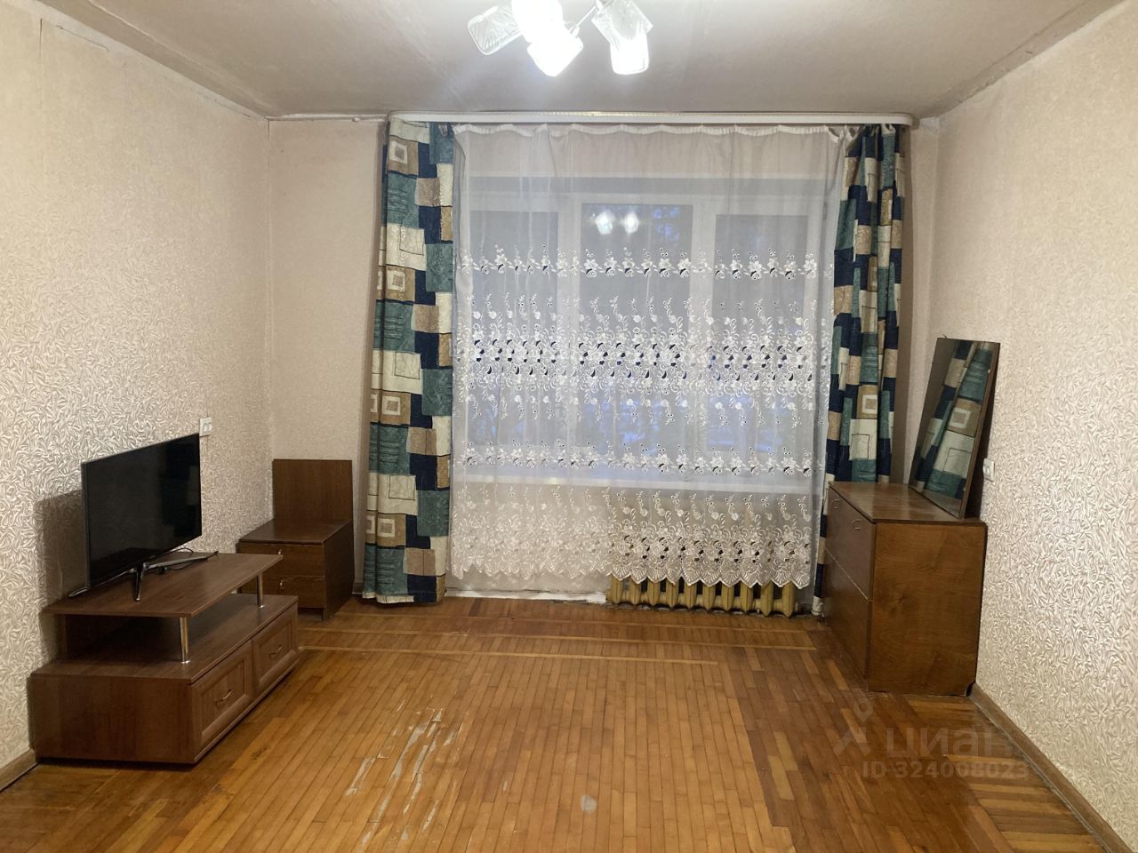 Напольное покрытие в комнате - паркет, в очень хорошем состоянии, потолки побелка. Для будущих собственников есть возможность воплотить все новые идеи в дизайне по своему вкусу и не переплачивать за предпродажный ремонт.