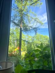 Вид из окна прямо на парк и на детскую площадку.