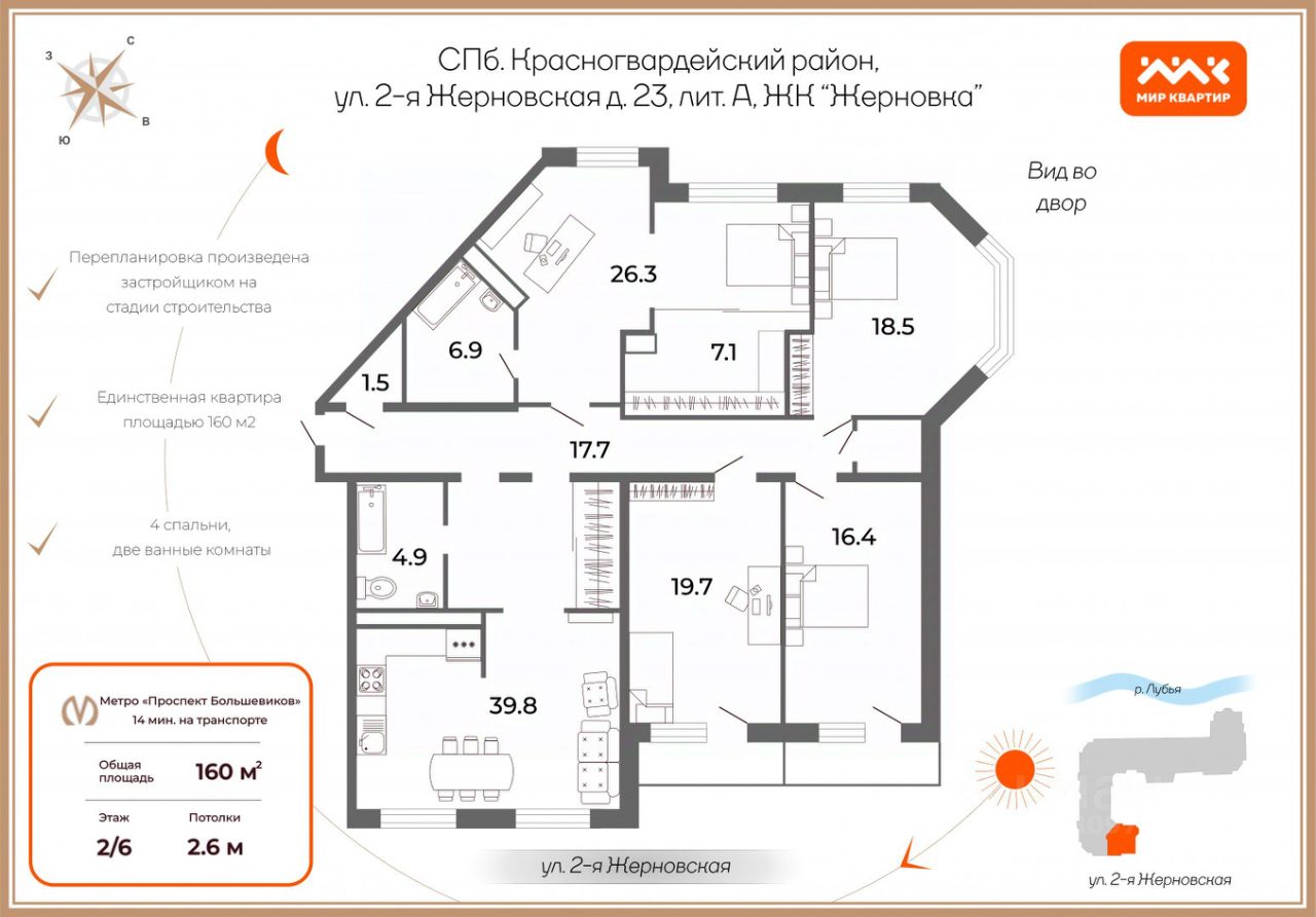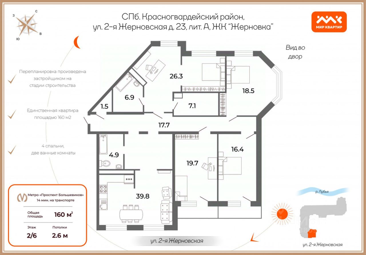Особенности: окна на три стороны, дом у воды, тихая тупиковая улица