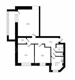 Общая площадь — 80.5 кв. м, комнаты 13,6 кв.м, 14,6 кв. м, 23,6 кв. м, кухня — 8.3 кв. м, гардеробная 2,8 кв.м, в квартире выполнен современный ремонт.