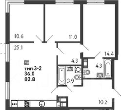 - Две изолированные спальни - 11 и 10,6 кв.м