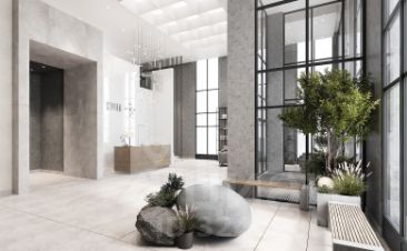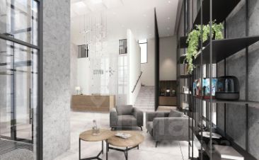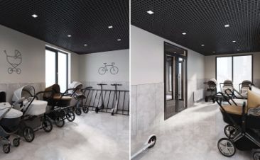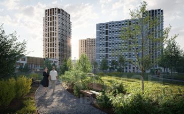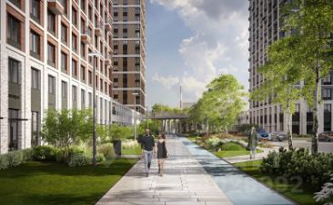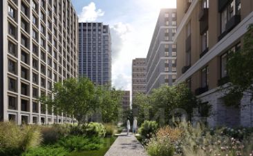 - На территории комплекса парящий пешеходный мост, двор с ландшафтным дизайном, арт-объекты, игровые и спортивные площадки