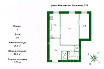 • Потолки — 3,32 м, что создаёт простор и даёт возможность для нестандартных решений.