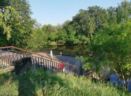 Ладожская, магазины, торговые центры, медицинские учреждения. Для любителей активного отдыха вдоль реки проходит пешеходная дорожка.