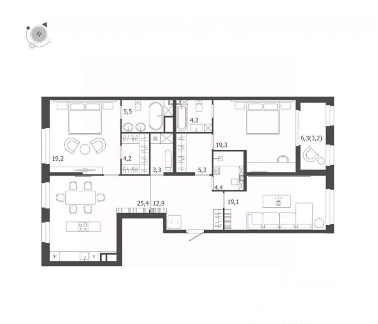 -Две мастер-спальни с собственным санузлом и гардеробной