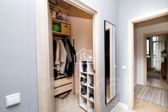 Есть удобная просторная гардеробная (3 кв метра), где можно хранить все необходимые вещи и, благодаря этому, нет необходимости в покупке дополнительных мест хранения