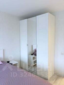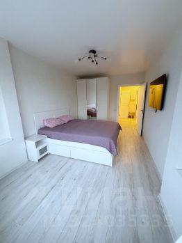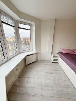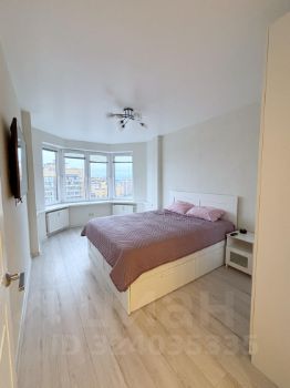 В спальной комнате эркерное окно с видом на небо, телевизор 55', кровать 160х200 с зоной хранения, большой глубокий шкаф Пакс. В комнате есть место для организации рабочей зоны.