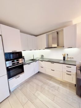 Дом 2018 года, после получения ключей в квартире был сделан с нуля ремонт: выравнивались стены под маяки, равнялись полы, установлен теплый пол, фильтры воды, бойлер. Заменено остекление на двойное, в лоджии тепло как в комнате даже зимой. Вся плитка испанская, техника немецкая Bosch. Сантехника Am.Pm и Grohe.