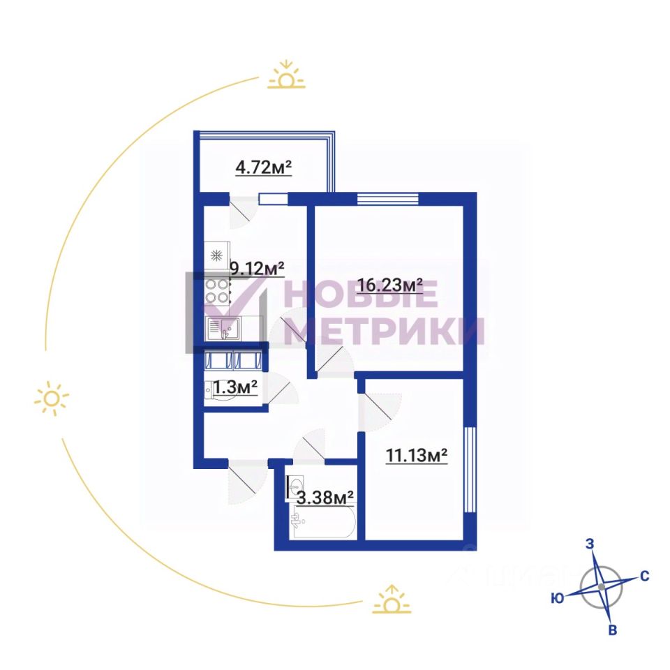 В непосредственной близости расположены магазины, аптеки и другие необходимые удобства. С открытием нового ТЦ Небо всего в 3 минутах пешком, ваша жизнь станет ещё удобнее! В 5 минутах — новая поликлиника и две школы во дворе, а детские сады находятся в радиусе 200 метров.
