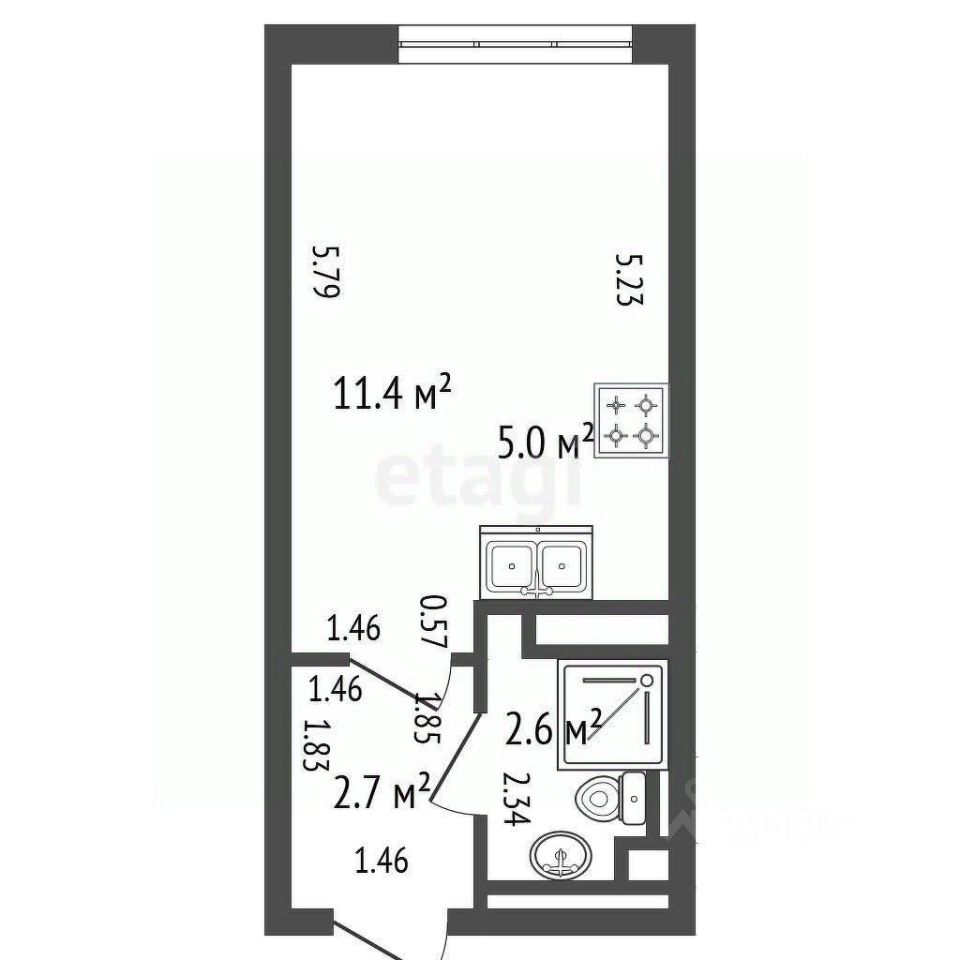 Общая площадь 21.7 м², кухня 5. м². Увеличенные окна, отделка выполнена с использованием керамогранита. В ванной теплый пол. Квартира с ремонтом.