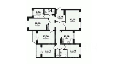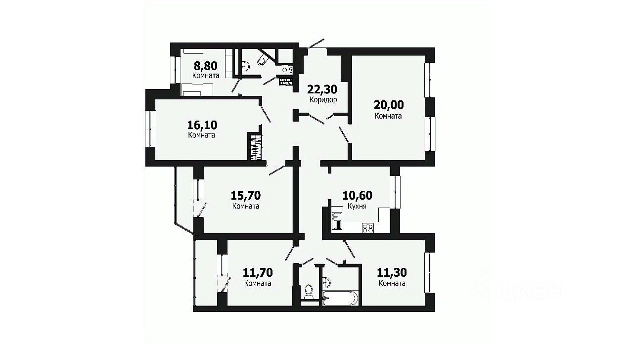 Площади комнат: 20/11,3/11,7/15,7/16.1/8.8, кухня- 10,6 кв.м,