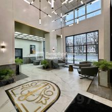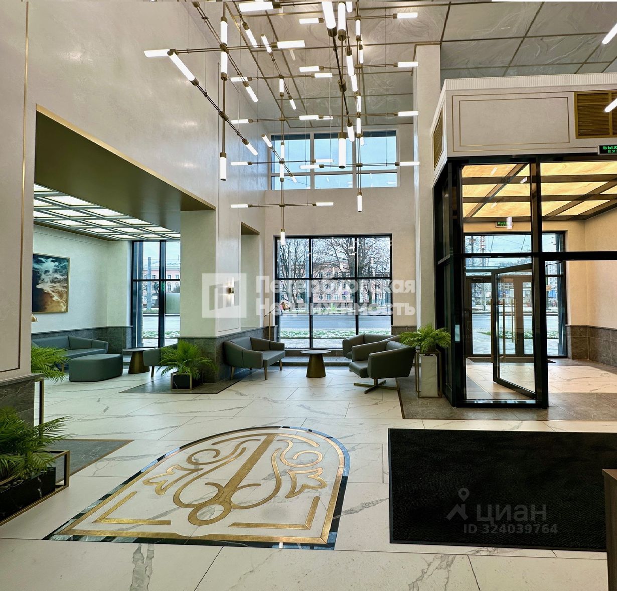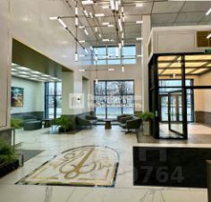 На первом этаже входная группа, прозрачные входные двери, лаунж-зоны.
