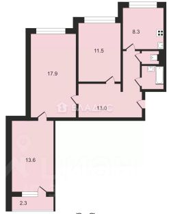 -Смежно-изолированные комнаты - 13,6 кв.м, 17,9 кв.м, 11,5 кв.м.