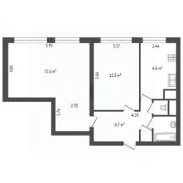 В квартире 2 изолированные комнаты правильной формы 22,6 и 12,3 метра