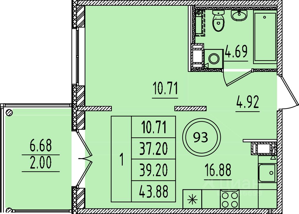 Общая площадь37,2 м²