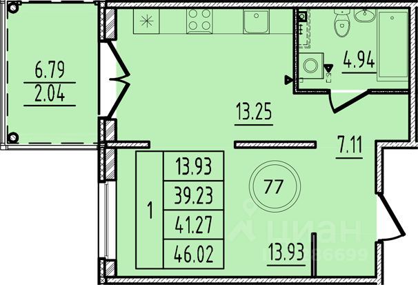 Жилая площадь13,9 м²
