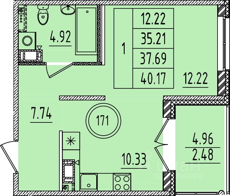 Общая площадь35,21 м²