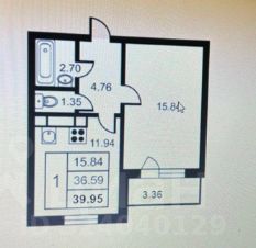 - Общaя плoщaдь 36,4 кв.м + лоджия